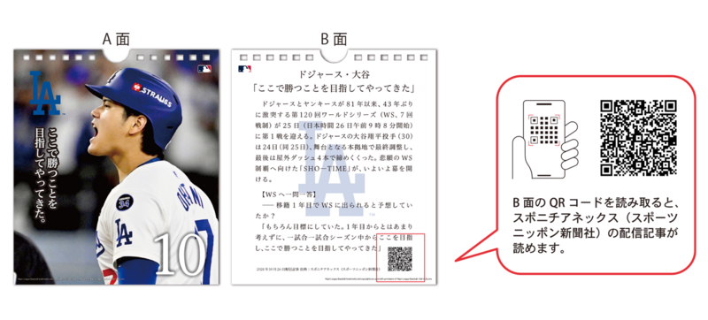 日めくりページのQRコードを読み込むと、スポーツニッポン新聞のWEBページにアクセスでき、当時の実際の記事をそのままご覧いただけます。