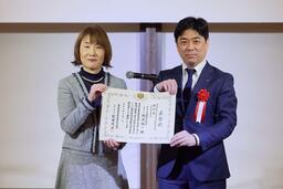 表彰式の様子(左から:審査委員長 釘宮 悦子氏、ヤマト運輸 執行役員 日比野 靖)