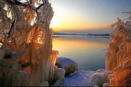 Fukushima Prefecture Department of Conservation announced that Lake Inawashiro, located in Aizuwakamatsu City, Koriyama City, and Inawashiro Town, Fukushima Prefecture, is currently experiencing its peak season for "shibuki-gori" (spray ice) -- a seasonal feature in the harsh winter season.
