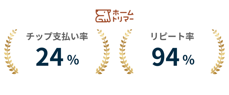 ホームトリマーでは、チップ支払い率24%、リピート率94% と、高い満足度と継続利用実績を背景に、多くの飼い主様に支持されています。