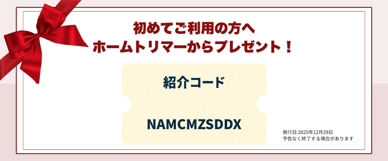 【この記事を読んだ方限定|紹介クーポンコード:NAMCMZSDDX】 (初回仮予約時に入力)