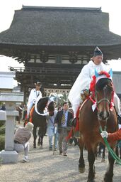 日本初の国営牧場が置かれたこの地は、1400年以上にわたり馬の行事が続く “馬の聖地” として知られています。新年には「全国 馬・競馬・乗馬 安全祈願大祭」が催され、乗初式も行われます。5月6日の例祭では、日本最古の競馬として伝わる「足伏走馬(あしふせそうめ)」が披露され、全長約400mの馬場を駆け抜ける迫力ある走りが見どころ。また、秋には、全国から乗り手が集い、各流派の流鏑馬や馬上武芸、競馬神事が行われる「馬上武芸奉納祭」も開催され、華やかな奉納行事が繰り広げられます。年間を通じて、ここならではの深い馬文化を体感することができます。