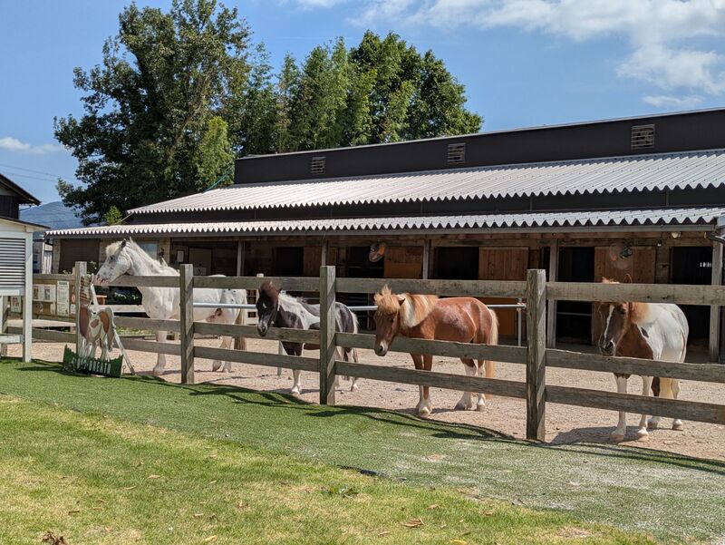伊吹山麓の複合施設。ポニーへの餌やりやお散歩体験など、子どもでも安全に楽しめるメニューが揃っています。自然の中で馬とふれあえる「初めての馬体験」に最適。※対象は3歳〜、体重25kgまで。