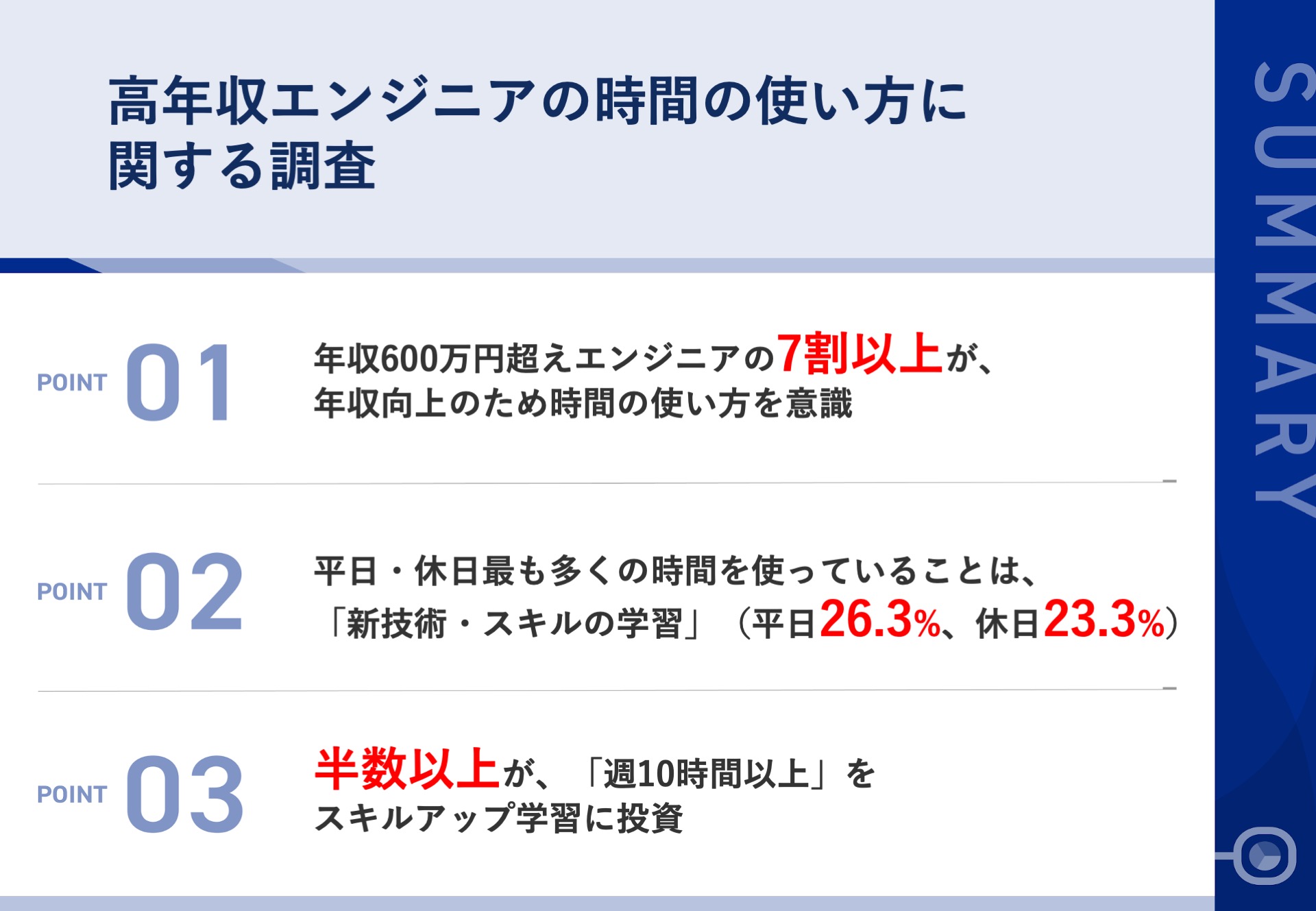 01|年収600万円超えエンジニアの7割以上が、年収向上のため時間の使い方を意識