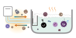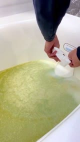酸性のA剤が水垢やサビに、アルカリ性のB剤が皮脂などの汚れや雑菌に作用し、特製のシリコン製容器「洗浄カップ」を使用することで、洗浄剤の高い濃度を維持し、一般的な追いだき配管洗浄剤よりも効率的に汚れを落とすことができます。