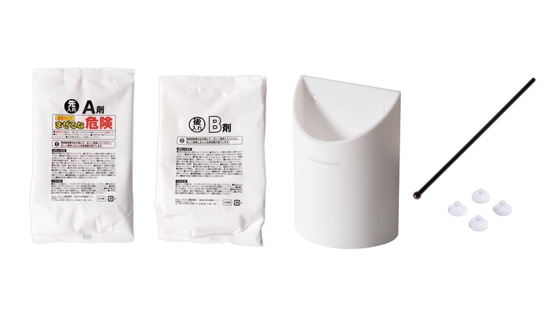 <風呂釜パイプバスターZ>A剤2袋、B剤2袋、洗浄カップ、吸盤4個、かき混ぜ棒
