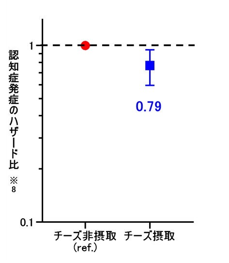 認知症発症を結果の指標とし、チーズ摂取を介入としたコックス比例ハザードモデル※6を適用することにより、チーズ摂取と認知症発症の関連性を解析しました。