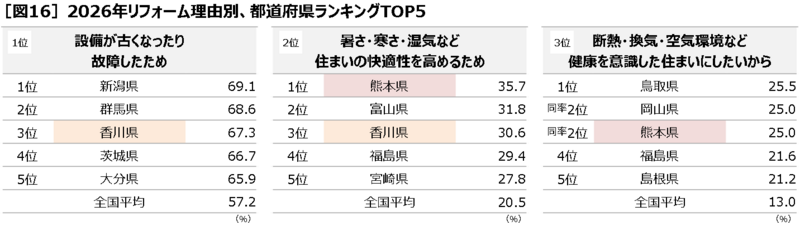 2026年にリフォームしたい理由別に上位県を見たのが[図16]です。