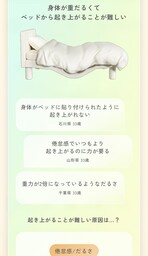 表示される症状のうちの一つを選択すると、その症状を抱える人の実際の声と「こころの波」が表示されます。(チャプター3「想像する」)