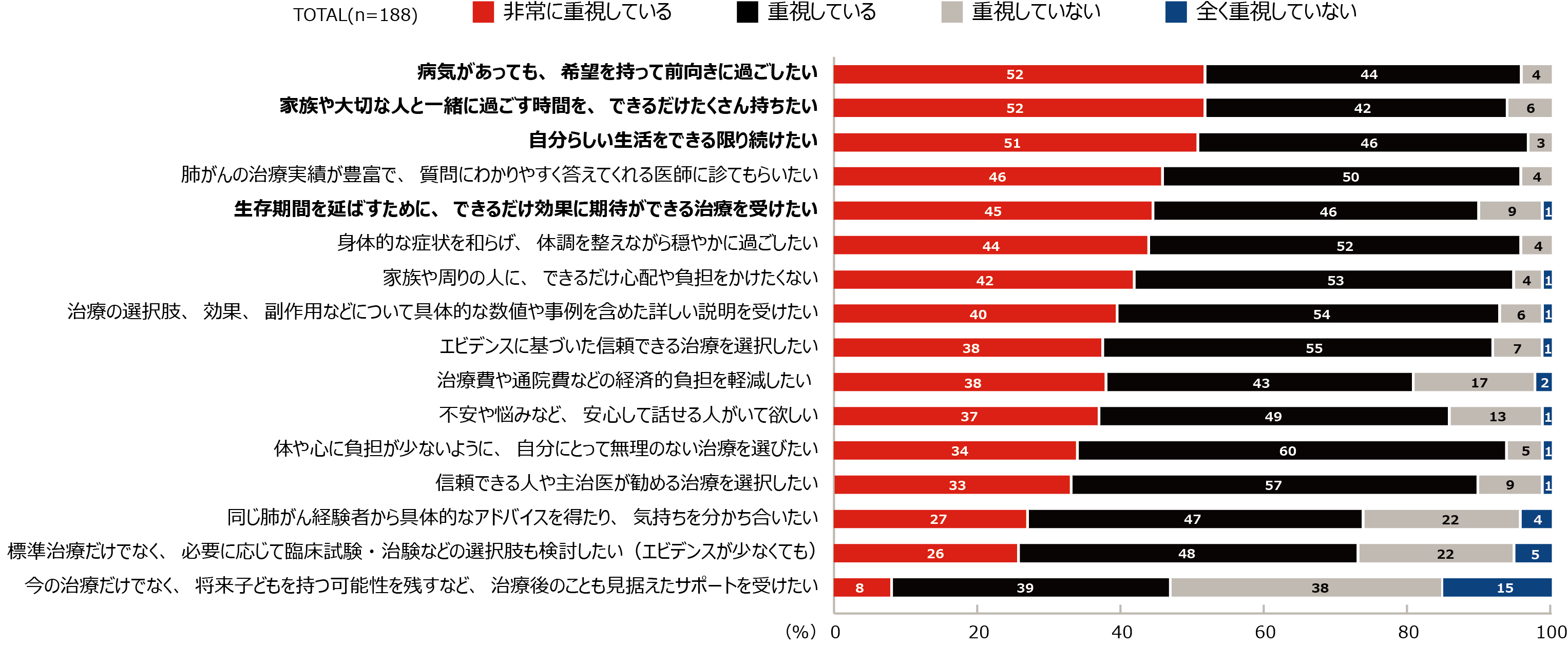 肺がん患者さんは「生存期間を延ばすために、できるだけ効果に期待ができる治療」を最も重視、 重視以上の割合は90%
