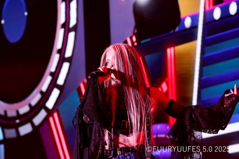 トリを飾ったのは「KizunaAI」。2016年にヴァーチャルYouTuberの先駆者として誕生し、広いフィールドで大活躍するが、2022年に無期限活動休止。しかし2025年2月、3年ぶりに活動を再開。今回、「FUURYUUFES」に初参加となった。ステージに登場し「かもね」が始まると大きな声援が響き、その人気の高さを改めて感じさせてくれた。「はいどうも、KizunaAIです! 盛り上がっていますか?」と呼びかけ、大きな歓声に両手を振って応えた。「『FUURYUUFES』初出演です!トリを務めさせていただきます!みんなで声出して、最後まで盛り上がっていきましょう」と言って「future base(Homecoming REMIX)」「AIAIAI」を歌唱。「会場のみんなの声が聞けて、めちゃくちゃ楽しいです。同じ空間で音楽を通じて一つになれている空間が現地ライブならではだなって思って、すごく嬉しいです。本当に今日、最高!」と喜びを爆発させた。「たくさんの出演者の皆さんでバトンを繋いで、見てくれているみんなと一緒に一つのライブを作ってくれていることがすっごく幸せです。『FUURYUUFES』参加できてよかったです。ありがとう! 全員で最後まで盛り上げて素敵なフェスにしましょう。また呼んでもらえると嬉しいです」と伝えて、「Hello, Morning」を甘狼このみ、音ノ乃のの、宗谷いちか、ぶいごま、iLiFE!とのコラボで届けてフェスを締めくくった。