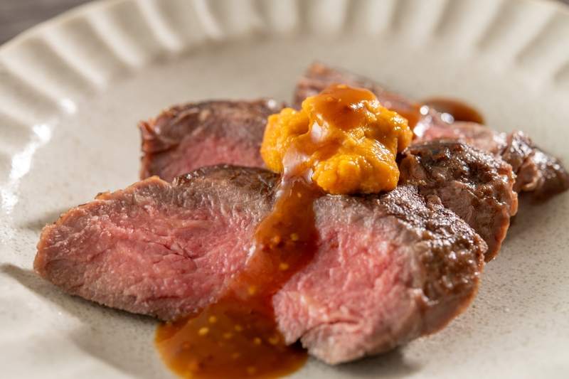 「牛サーロインステーキに”うにをのせて”和風ロッシーニ仕立て」(ディナー限定)