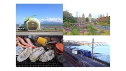 (左下)諫早の冬の名物 小長井牡蠣 (右下) 最高のロケーション 小長井駅