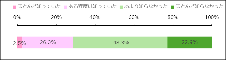 図1を見てわかるように約7割の方が、「ほとんど知らなかった/あまり知らなかった」と回答しており、ギャンブル依存に関する知識は十分に浸透していないということがわかります。