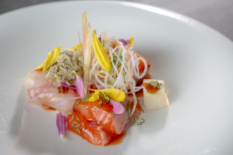 レストランは「信州の豊かなテロワール(風土)」を最高の形で表現し、すべてのお客様に、洗練された居心地の良さと、信州の豊かさが響き合う、特別な食卓としておもてなしするレストランへ。お食事は和・洋のテイストが融合した前菜六種から始まり、ノルウェーと信州の二種のサーモンをお召し上がりいただきます。メインディッシュでは鹿肉と和牛をそれぞれ贅沢に食べ比べしていただけ、五感で味わう「調和のダイニング」で信州の豊かな滋味をご堪能ください。