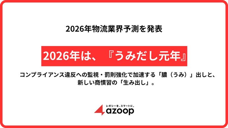 株式会社Azoop(本社:東京都港区、代表取締役社長CEO: 朴 貴頌、以下:Azoop)は、法規制の動向などをもとにした「2026年物流業界予測」を発表いたします。