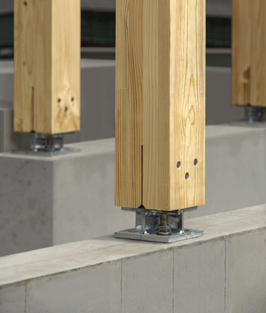 SI-COLLABORATIONは、積水ハウスが持つ安全・安心の技術を、全国のビルダー様にオープン化するという画期的な取り組みです。そのコア技術となるのが、基礎と躯体を専用金物で直接つなげ、強固に緊結する「DJ構法(ダイレクトジョイント構法)」です。従来の、基礎と柱の間に土台を配置する木造住宅とは違い、優れた耐震性を実現します。