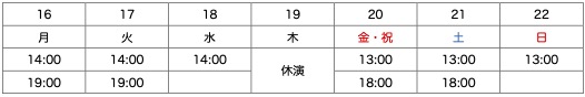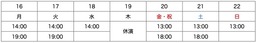 14:00 14:00 14:00 休演 13:00 13:00 13:00