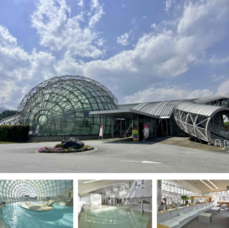 ゆ~ぷるにらさき 韮崎市健康ふれあいセンターは、 ガラスドームが特徴的な日帰り温泉施設です。