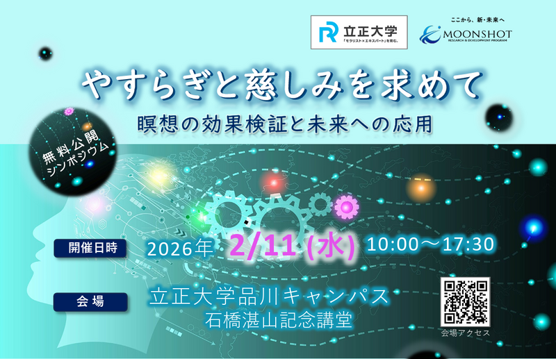 本シンポジウムは、内閣府「ムーンショット型研究開発事業目標9」における今水寛プロジェクト「東洋の人間観と脳情報学で実現する安らぎと慈しみの境地」の一環として開催されます。