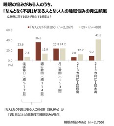 「なんとなく不調」を感じる人は睡眠の悩みも多く、睡眠の悩みが発生する頻度も高い
