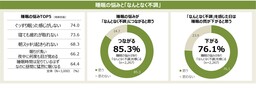 睡眠の悩みで強まる「なんとなく不調」TOP3「疲れ・だるさ」「頭痛」「目の疲れ」