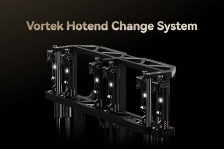The H2C debuts Bambu Lab's innovative Vortek Multi-Material System, which integrates high-speed printing, engineering-grade accuracy, and seamless material switching into a compact desktop platform. Unlike traditional single nozzle multi-material units. The Vortek Hotend Change system enables the use of up to six interchangeable, contactless connected hotends. Tool changes take only a few seconds, with virtually no user involvement.