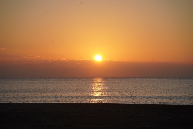 宿から歩いて五分で眼前には海岸線が広がり、砂浜にヨガマットをひろげる。