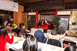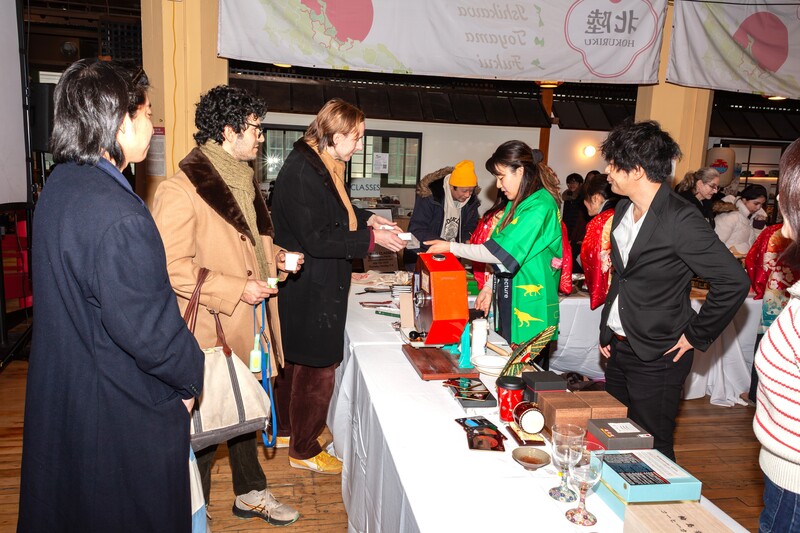 また、1月24日(土)・25日(日)(現地時間)には、2階のイベントスペース「The LOFT」で、ワークショップや抽選会イベントを開催しました。 期間中はあいにく3年ぶりのマイナス12℃を下回る寒波による大雪に見舞われたため、イベントスケジュールの一部変更を余儀なくされたものの、参加者に一番人気だったおにぎり作り体験では、約300人の参加者が、会場に用意された3県のブランド米(ひゃくまん穀〈石川県〉、富富富〈富山県〉、いちほまれ〈福井県〉)と、石川の能登の塩やゆず味噌、富山のブリの焼きほぐし、福井で栽培されるうめの品種「紅映梅(べにさしうめ)」を使用したねり梅など、9種の具材の中から好きなものを選び、自分好みのおにぎりを作りました。