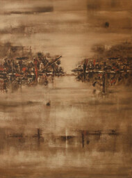 V. S. Gaitonde’s rare abstract masterpiece invites a state of profound meditation, where layered surfaces and silent tonal shifts transcend visual art to become an experience of pure inner stillness.