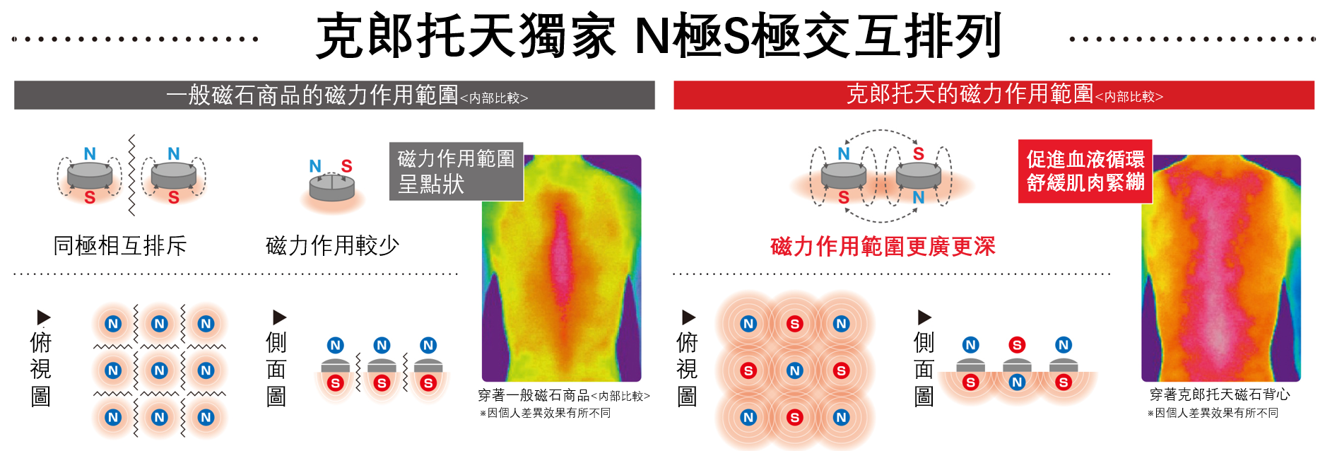 ■「Colantotte藉由N極S極交互排列技術,打造獨特的磁力循環效果。