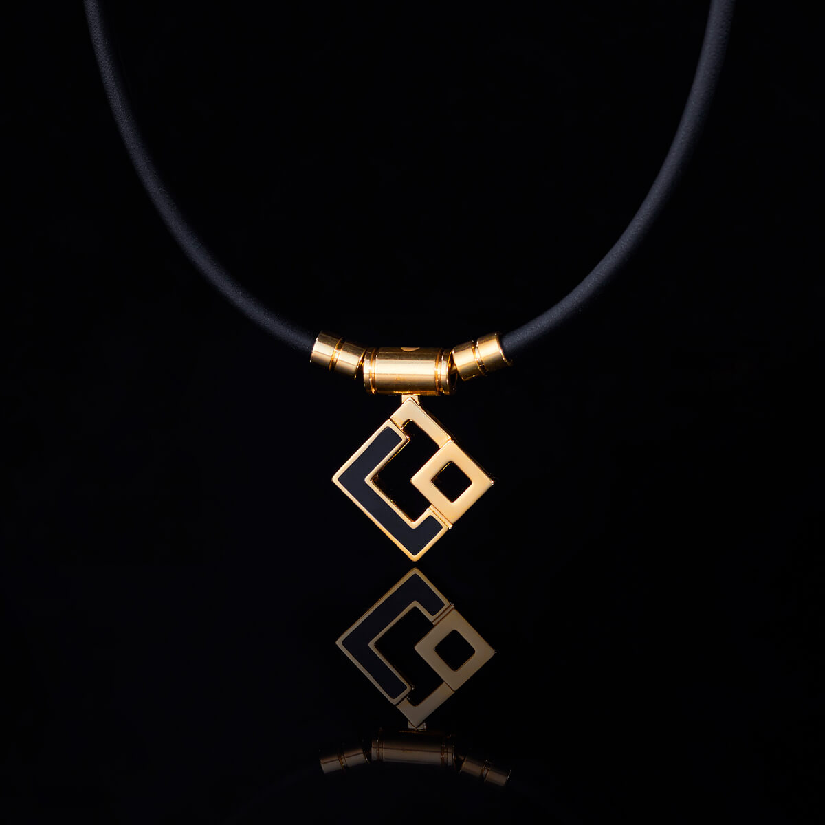墜飾設計以令人印象深刻的「CO」品牌LOGO為核心,結合「鏡面拋光」與「研磨琺瑯」工藝,營造出俐落鮮明的視覺對照。此外,墜飾與接合處皆採用24K金電鍍處理,不僅溫和親膚,且散發高貴質感。