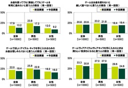 「ゲーム課金で生活に困ったことがある」10.5%、「ゲーム課金に後悔したことがある」18.8%