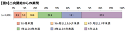 出向開始からの期間では、5年以上(375人、37.5%)が最多、次いで1年以上3年未満(219人、21.9%)、3年以上5年未満(181人、18.1%)、6か月以上1年未満が(106人、10.6%)、3か月以上6 か月未満及び3か月未満はそれぞれ10%未満であった。【図6】