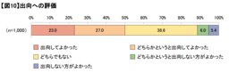 一方、「どちらでもない」が386人( 38.6%)、出向を評価しない者(「出向しない方がよかった」(5.4%)または「どちらかというと出向しない方がよかった」(6.0%)と回答した者)が114人(11.4%)となった。【図10】