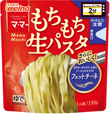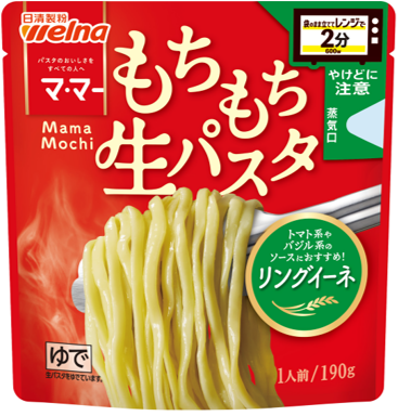 「マ・マー レンジで2分 もちもち生パスタ」は、電子レンジ調理で手軽に楽しめる点を特長とする生パスタシリーズとして、このたびリニューアル・新発売します。短時間調理という利便性はそのままに、より生パスタらしい“もちもち”とした食感を向上させるとともに、風味もより良く改良し、さらにおいしくなりました。