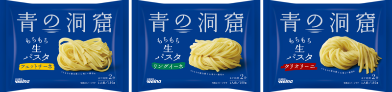 新発売となる「青の洞窟 生パスタ」は、「青の洞窟」ブランドの世界観を生パスタで表現したシリーズです。弾力感のある生パスタらしいもちもち食感により、パスタソースとの一体感を追求しています。フェットチーネやリングイーネなど、ソースの絡みやすさを考慮した形状を採用し、「青の洞窟」パスタソースのコクや奥行きのある味わいを引き立てます。