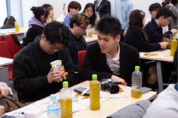小グループに分かれて、日本とタイの防災事情の違い、緊急時の食料備蓄、各国の即席食品文化などについて意見交換を行いました。