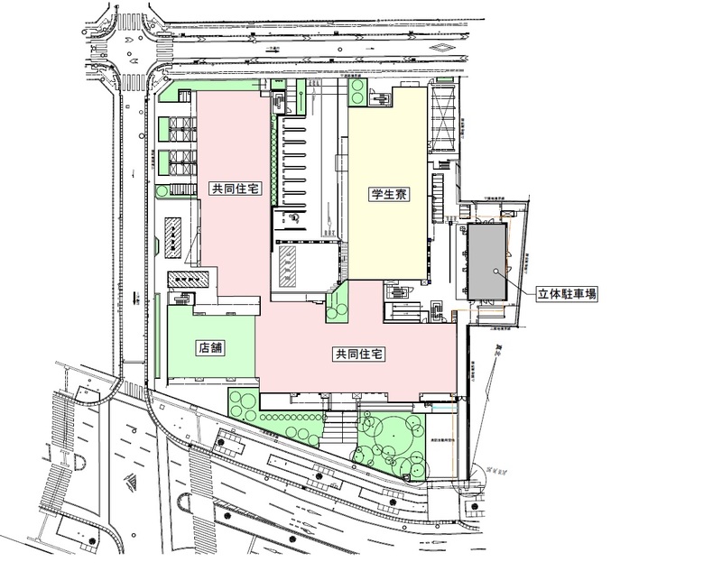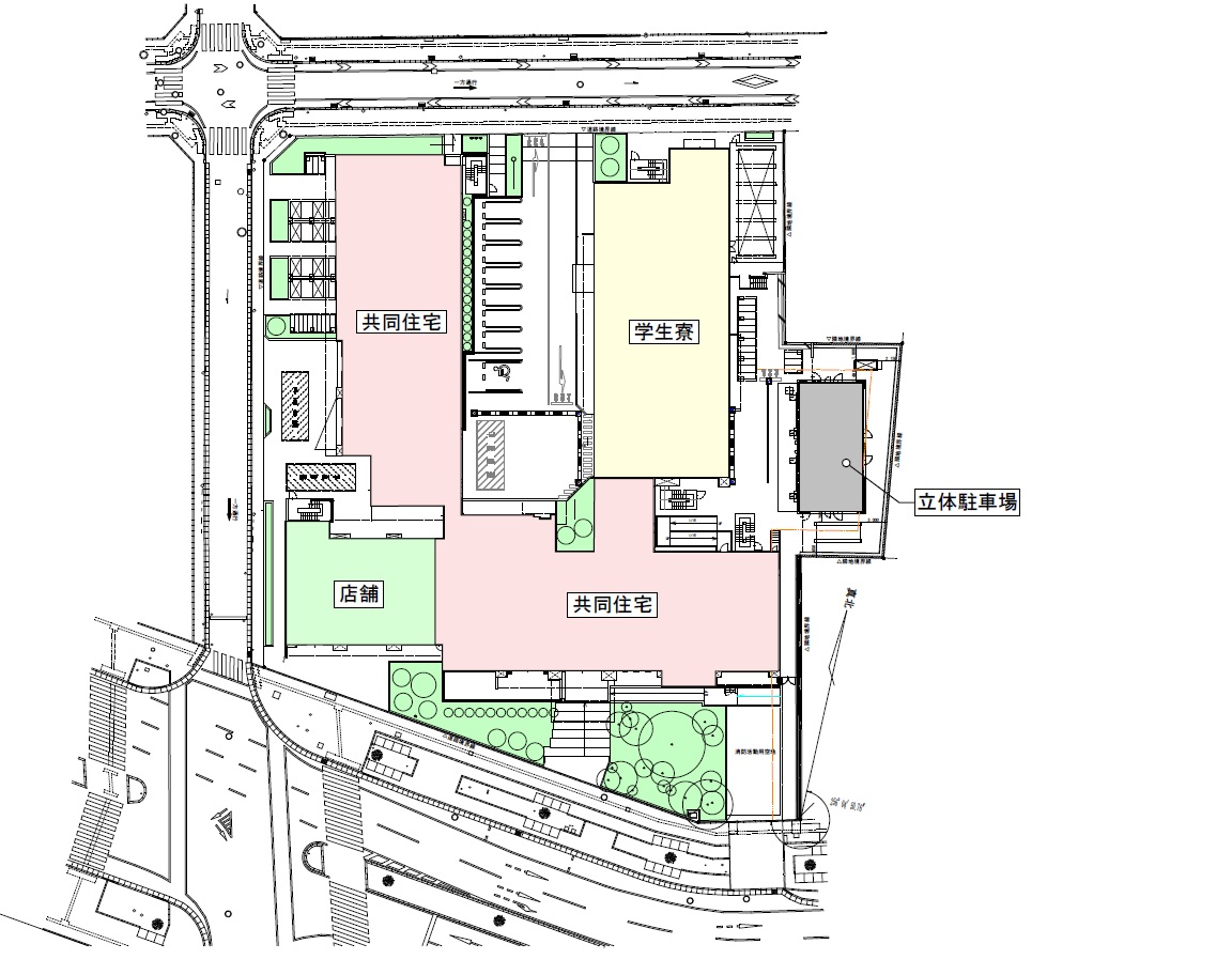 「Miraiフォレスタ仙台青葉通」は株式会社学生情報センターが運営する施設で、東北エリア最大戸数を誇る総室数258室の部屋を設けました。学生寮から徒歩約15分の場所に位置する、東北大学の学生が主に入居することを想定しています。賃貸マンションの主要な歩行者動線とは別動線のため、賃貸マンションの入居者と動線が交錯しにくい計画となっています。