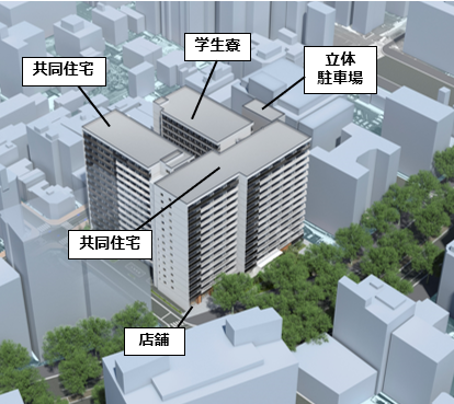本複合施設は、2018年に営業終了したビジネスホテル「アークホテル仙台青葉通り」の跡地に建設された、東北エリア最大戸数(※2)を誇る高級賃貸マンション(地上15階建て、266戸)、学生寮(地上14階建て、258室)、コンビニエンスストアからなる大型複合居住施設です。