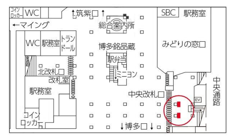 JR博多駅構内でもトップクラスの人流が見込まれる中央改札口付近に設置されたデジタルサイネージを2面セットにした商品です。