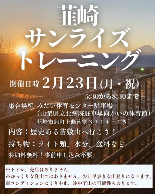【参加無料】「韮崎サンライズトレーニング」2月は苗敷山で開催