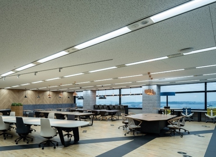 本拠点は、社員がレイアウトや什器の選定に主体的に関わることで、業務動線を最適化した機能的でデザイン性の高い空間を整備しています。加えて、オフィスラウンジや明るい執務スペースを配置することで、自然なコミュニケーションと創造性を促すワークプレイスを実現しました。さらに、東京湾やレインボーブリッジを望む開放的な立地に加え、周辺施設の利便性も高く、働きやすい環境を備えています。