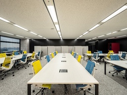 本拠点では、電源・空調・ネットワークを再構築し、多数のICT機器が安定稼働できる環境を整備しています。電流監視システムの導入やホットアイルキャッピング方式(*1)の採用により、熱・電力を最適に制御し、効率的かつ安全な運用を可能にしています。さらに、什器選定においてはモジュール構成や内装と調和するカラーバリエーションを取り入れ、柔軟性とデザイン性を両立させることで、作業性と空間美を兼ね備えた動作検証環境・キッティング環境を実現しています。