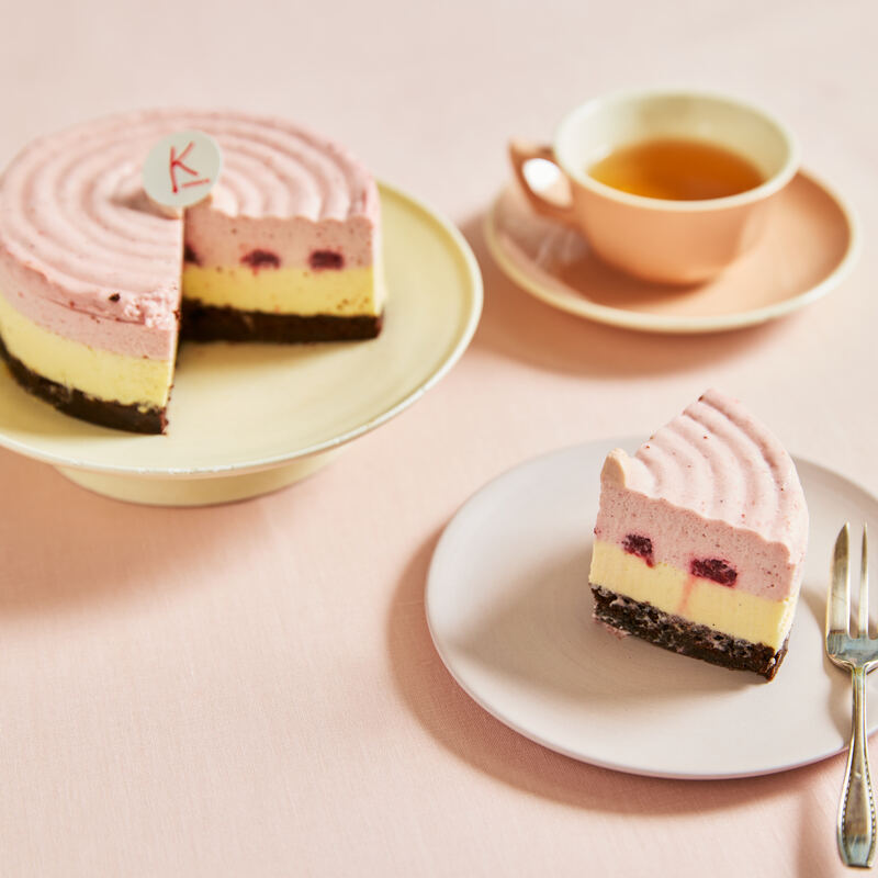 熊本県のパティシエール 塚本加奈子氏が、フランス修行時代に親しんだ軽やかなムースケーキを、日本の素材でアレンジしました。しっとりとしたチョコレートスポンジに、芳醇なバニラのババロワ、熊本県産「ゆうべに」と福岡県産「あまおう」を使用したなめらかなムースを重ねました。ムースの中のラズベリーコンフィチュールが程よい酸味のアクセントを添えています。
