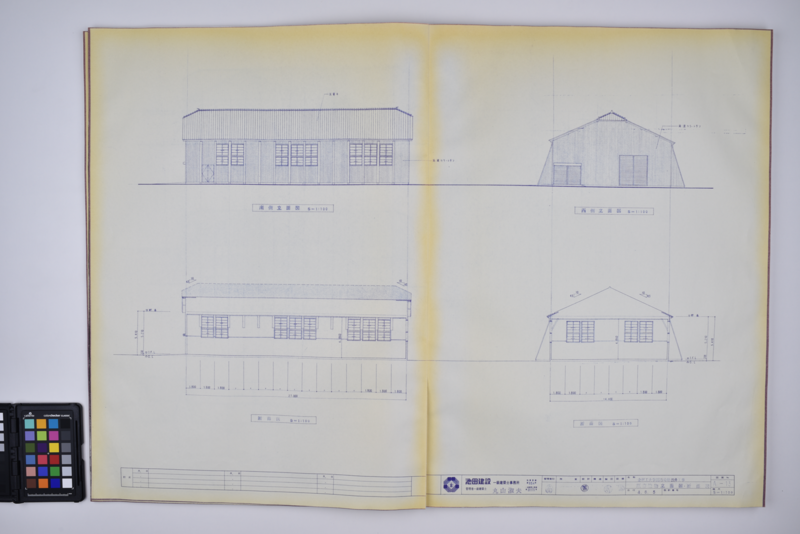 同校の講堂は、大工棟梁・山岸甚吉(山岸建築設計事務所・山岸敬広の曾祖父)により建設されました。解体時に金沢工業大学キャンパス内へ移築され、柔道場(湊谷道場)として利用された経緯があり、本学施設部において調査を行った結果、当時の図面資料(図版2)が発見されました。本資料は、屋根勾配や寸法体系などを把握する上で、校舎復元における重要な手掛かりとなりました。