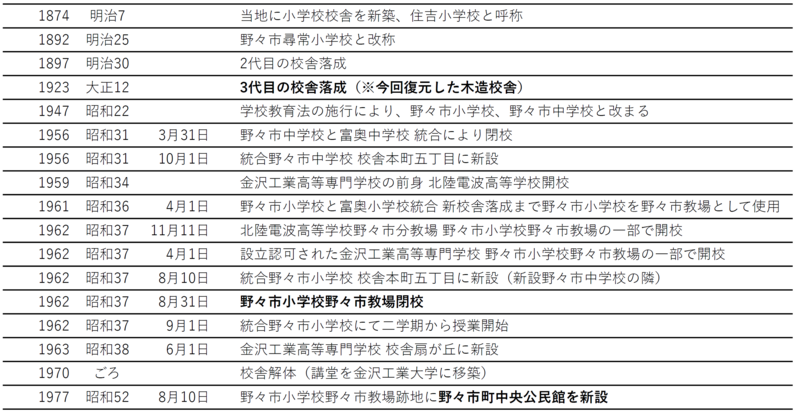 野々市尋常高等小学校 略年譜