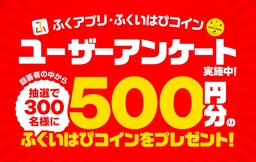 抽選で500円分のはぴコインが当たるふくアプリ・ふくいはぴコインユーザーアンケート
