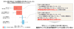 本調査の結果として、CSRの取り組みが「まあ積極的に取り組んでいる」から「ほとんど取り組んでいない」に変化することは、平均年収が約70万円下がることと同等の効果があることがわかりました。一方で、取り組みが「まあ積極的に取り組んでいる」から「かなり積極的に取り組んでいる」/「非常に積極的に取り組んでいる」に変化しても統計的に有意な差はありませんでした。