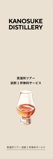 「シングルモルト嘉之助 JAL EXCLUSIVE DuMOL CASK FINISH」をご購入のお客さま全員に、もれなく鹿児島・日置の嘉之助蒸溜所にてご利用いただける「蒸溜所ツアー 試飲1杯無料サービス券」をプレゼント。
